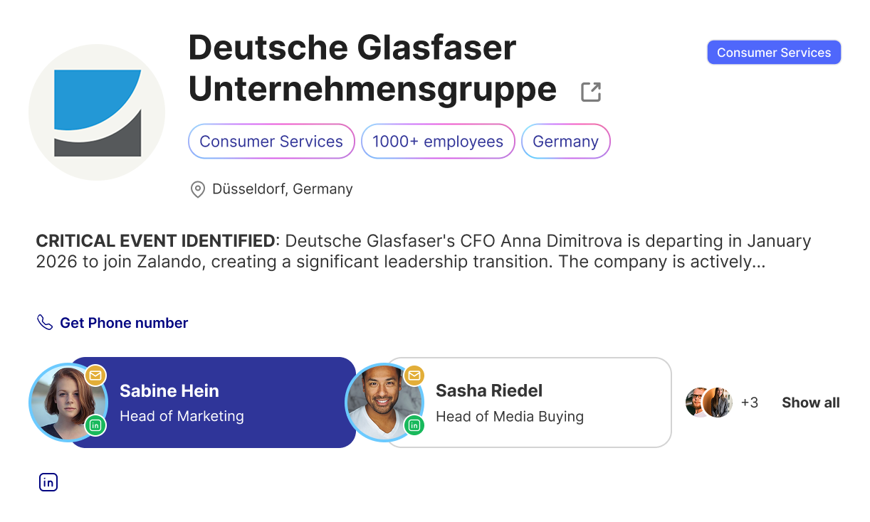 Erreichen Sie die richtigen Personen direkt mit verifizierten Telefonnummern für jeden Kontakt – automatisch angereichert und stets aktuell gehalten.